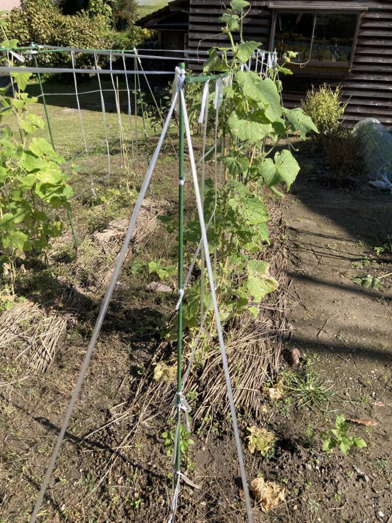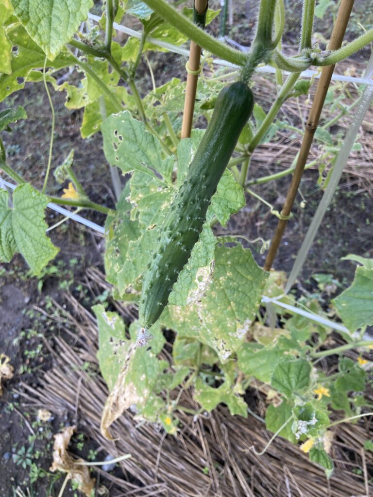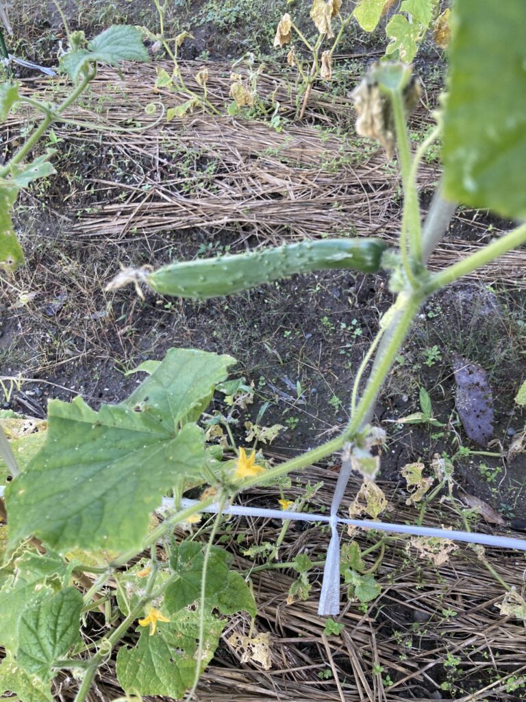 秋キュウリ2号と3号です。まだ10cmあるかないか。枯れてはないので、期待です。