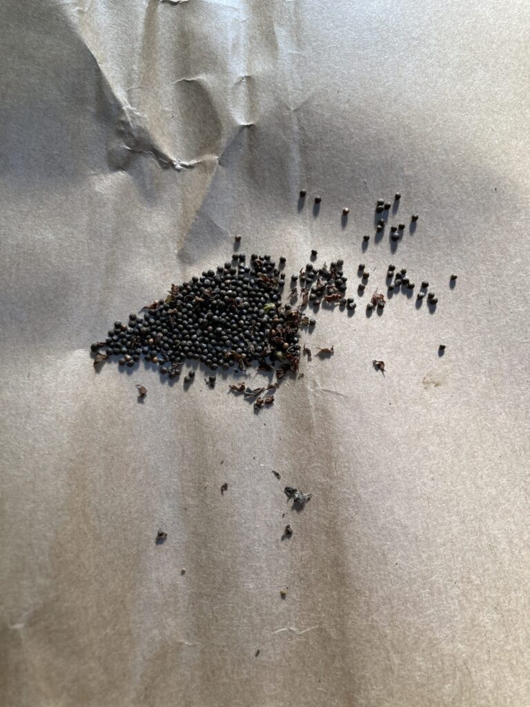 ③ 一緒に落ちた穂の部分をよけて、種だけにします。1mmあるかどうかの種が取れました。