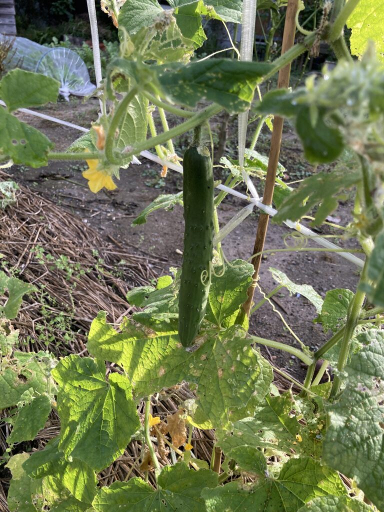 今季1つだけ、大きくなっている秋キュウリの実です。