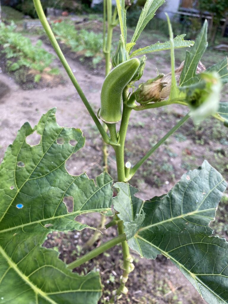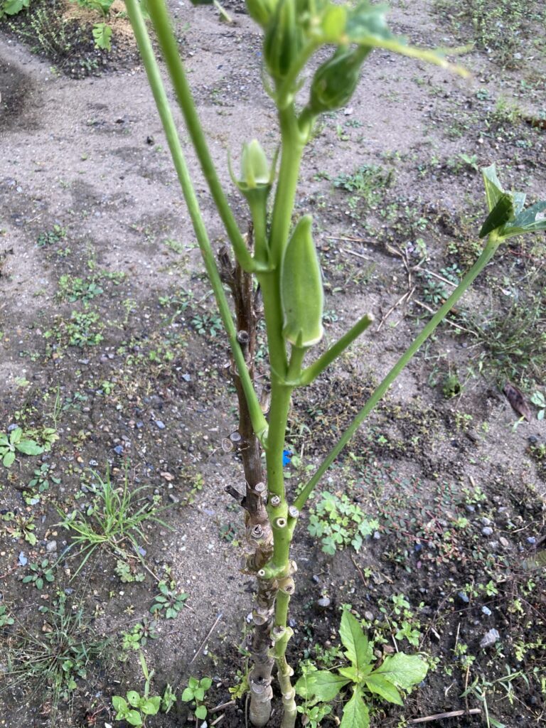 オクラも最終段階ですね。成長スピードが遅くなってきました。